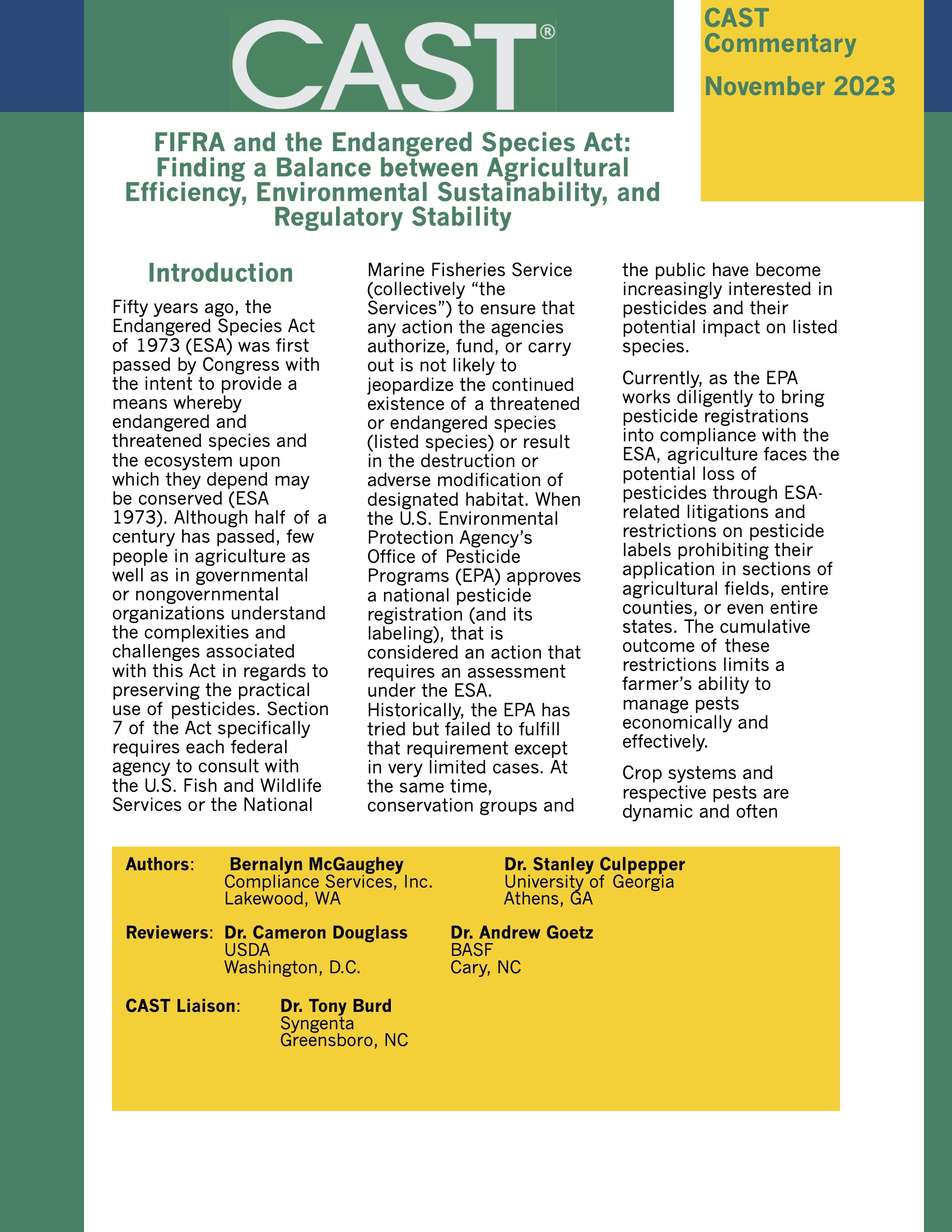 CAST assembles, interprets, and communicates credible, science-based information on agricultural and natural resource issues.